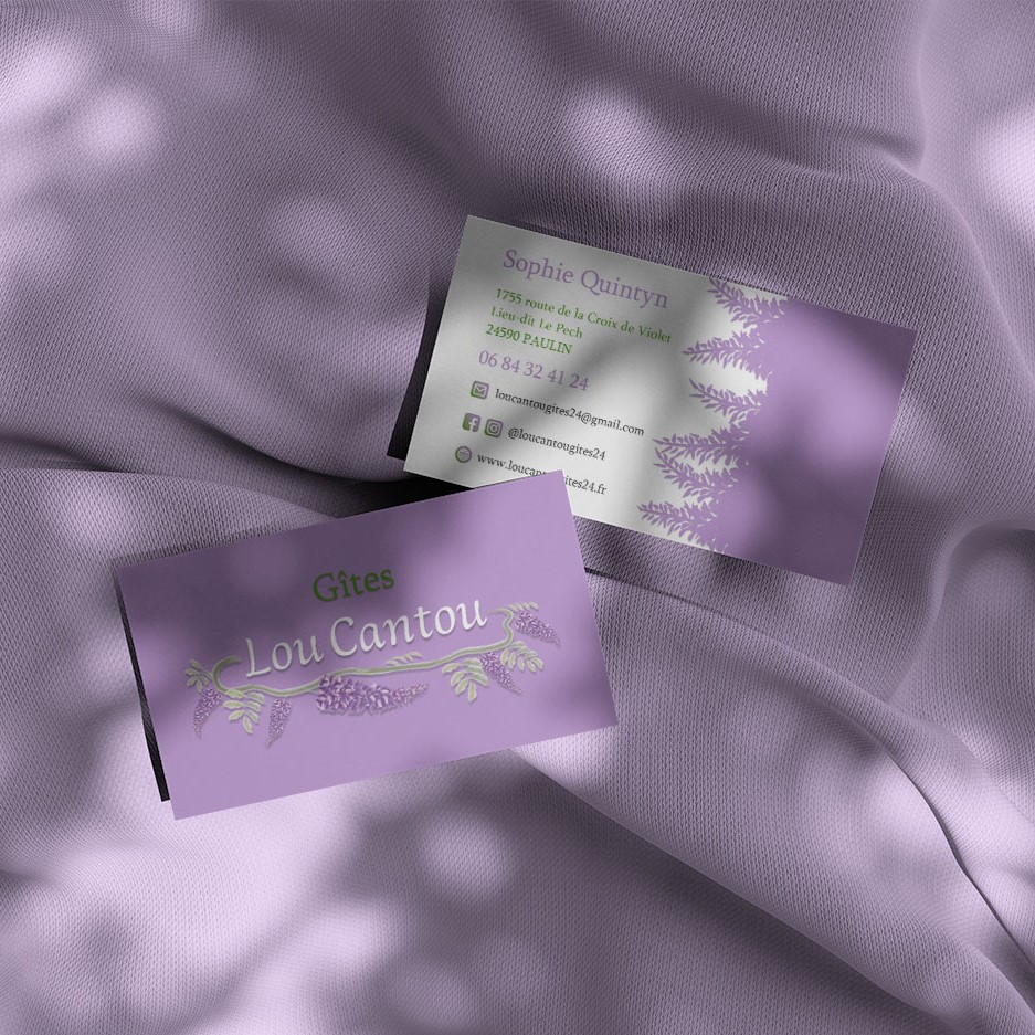 Création de l'identité visuelle globale de Lou Cantou, aux douces odeurs et couleurs de glycine.
